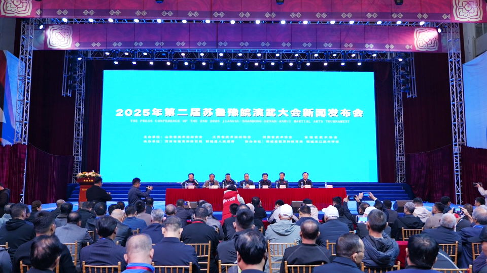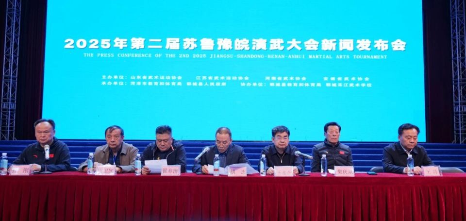 10月10日,2025年第二届苏鲁豫皖演武大会新闻发布会在山东郓城宋江武术学校隆重举行。