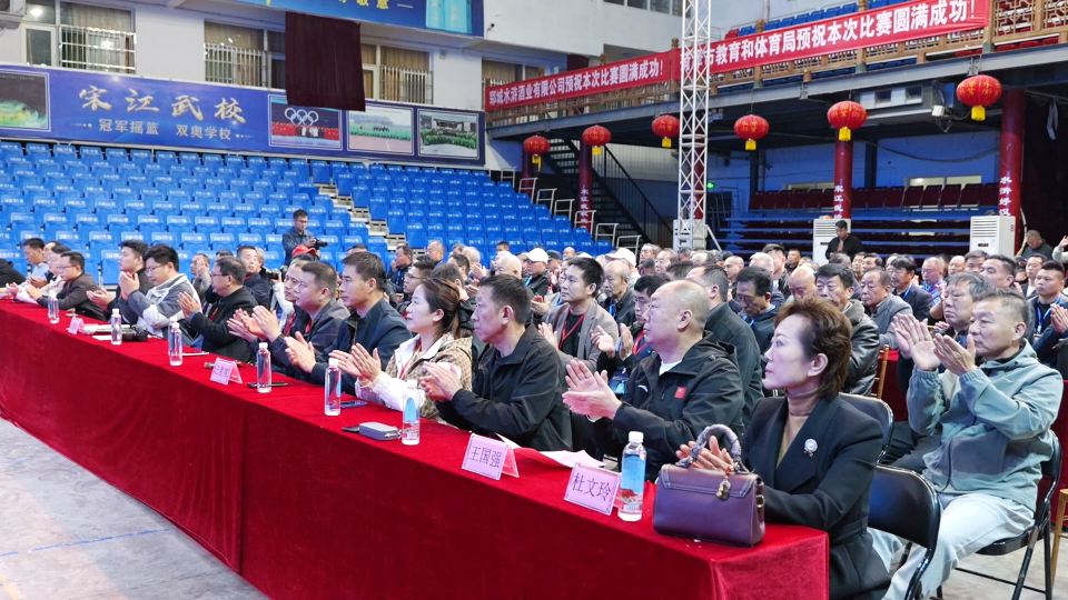 山东省武术运动协会会长胡杰,山东省武术运动协会常务副会长翟寿涛,山东省武术运动协会秘书长孙刚,郓城县人民政府党组成员、副县长王永合,郓城县教育和体育局党组书记、局长王涛,山东省武术运动协会常务理事 菏泽市武术协会主席周卫国,山东省武术运动协会副会长、宋江武校校长樊庆斌,四省武术协会代表、媒体记者及武术界人士近百人出席,共同见证这一区域性武术盛事的启动。
